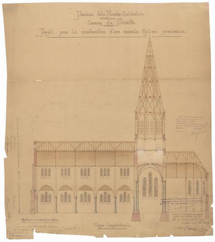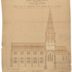 Opschrift: Province de la Flandre Occidentale. Commune de Marcke. Projet pour la construction d'une nouvelle Eglise paroissiale. Omschrijving plan: langsdoorsnede Datum KCML: 10/02/1900 Archiefnummer: W1061
