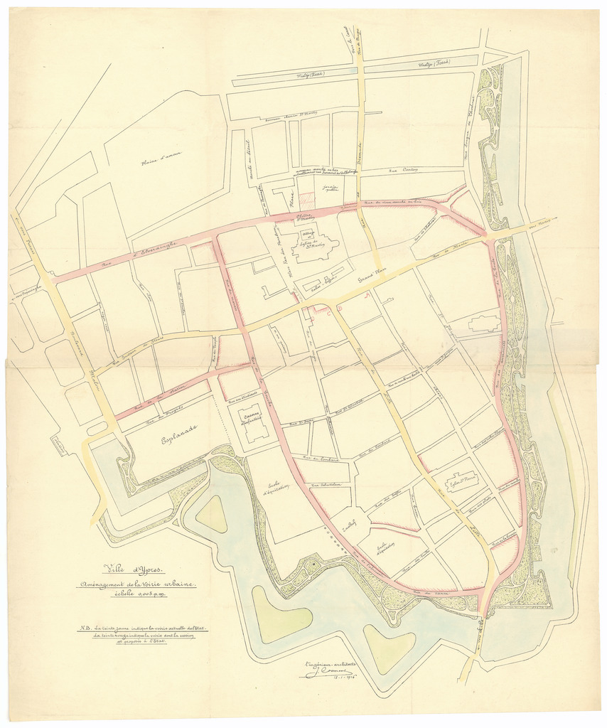 Opschrift: Ville d'Ypres. Aménagement de la voirie urbaine. Omschrijving plan: situatieplan Datum KCML: deze informatie wordt niet vermeld op het archiefstuk Archiefnummer: W0709