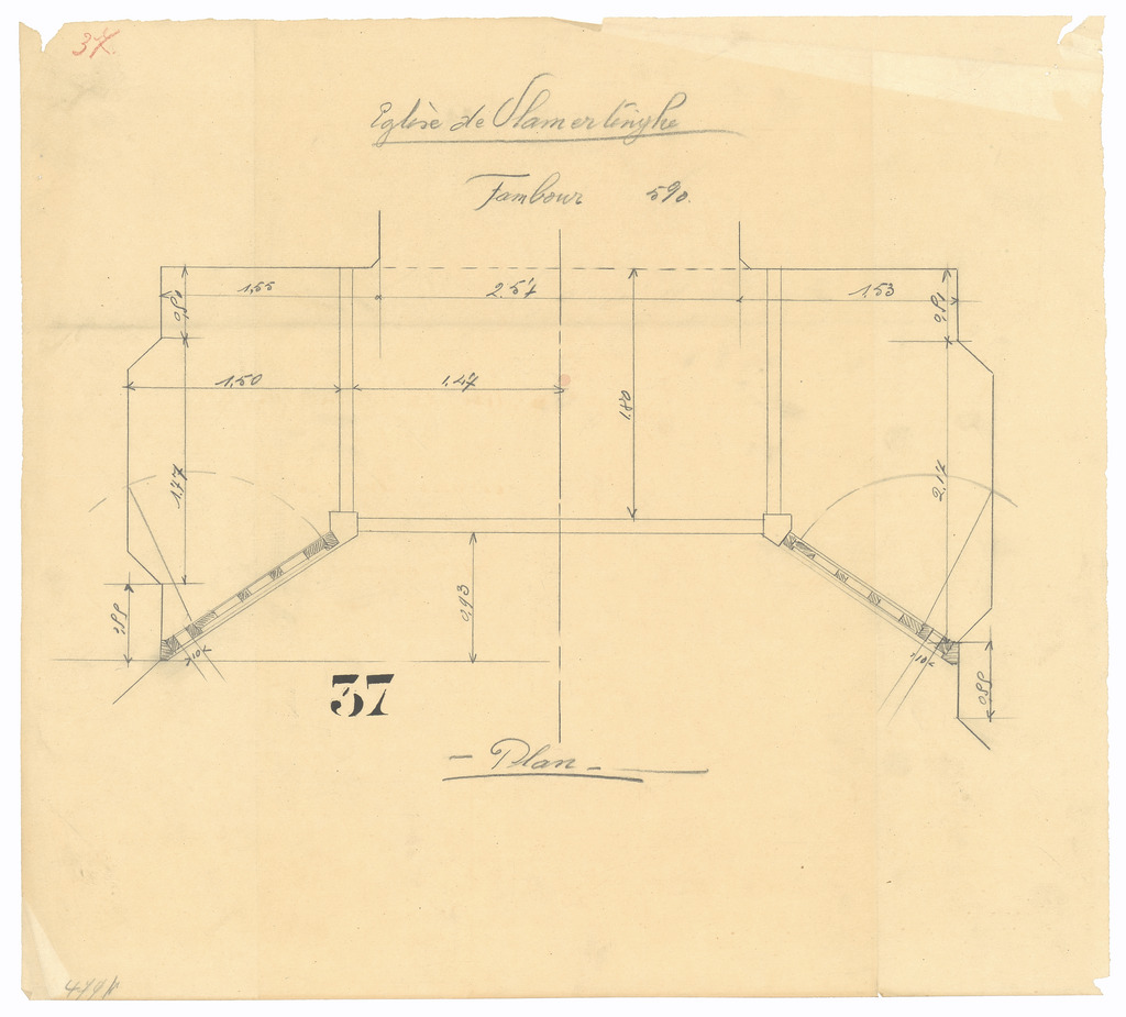 Opschrift: Eglise de Vlamertinghe. Tambour Omschrijving plan: tochtportaal Datum KCML: deze informatie wordt niet vermeld op het archiefstuk Archiefnummer: W0765