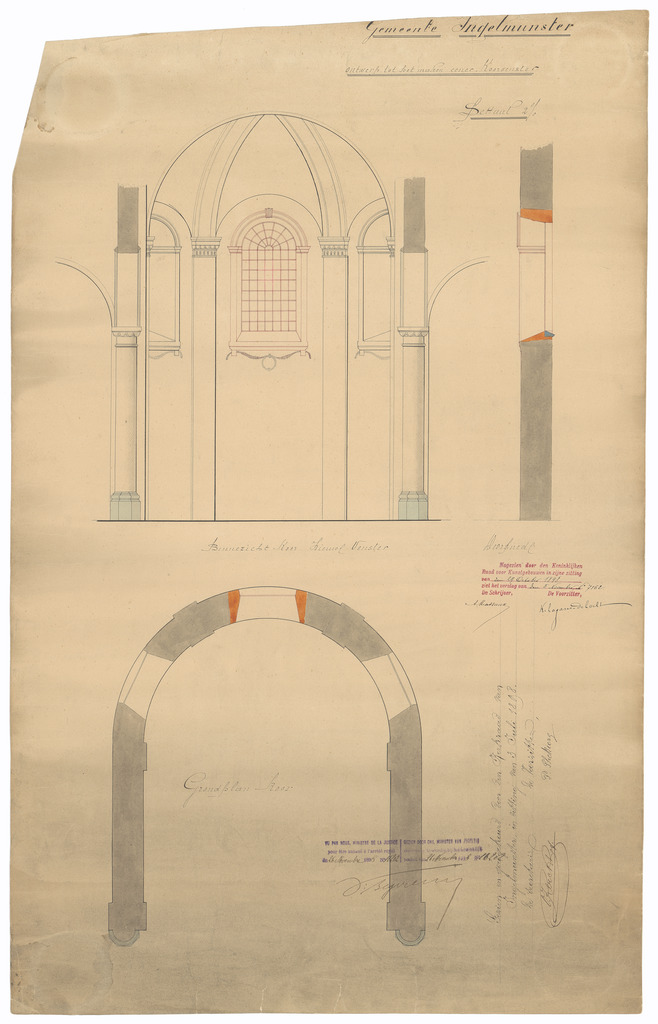 Opschrift: Gemeente Ingelmunster. Ontwerp tot het maken eener Koorvenster Omschrijving plan: ontwerp koorvenster Datum KCML: 29/10/1898 Archiefnummer: W0797