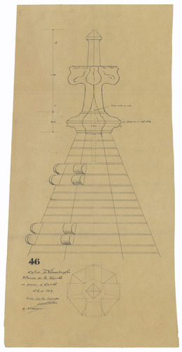 Opschrift: Eglise de Vlamertinghe. Fleuron de la tourelle en pierre d'Euville Omschrijving plan: fleuron torenspits Datum KCML: deze informatie wordt niet vermeld op het archiefstuk Archiefnummer: W0753