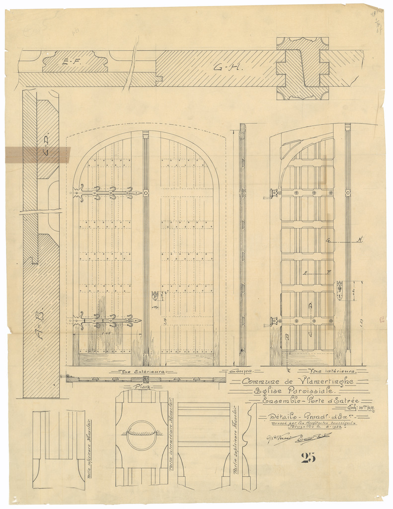 Opschrift: Commune de Vlamertinghe. Eglise paroissiale. Ensemble. Porte d'Entrée. Omschrijving plan: toegangspoort Datum KCML: deze informatie wordt niet vermeld op het archiefstuk Archiefnummer: W0757