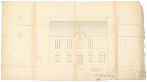 Opschrift: deze informatie wordt niet vermeld op het archiefstuk Omschrijving plan: opstanden gevels en doorsnede Datum KCML: 18/07/1891 Archiefnummer: W0891