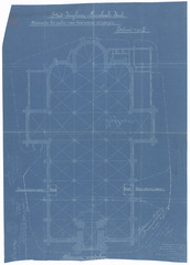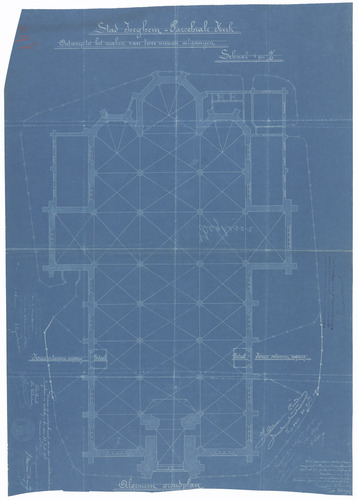 Opschrift: Stad Iseghem. Parochiale Kerk. Ontwerp voor uitvoering der werken tot het maken van twee nieuwe uitgangen. Omschrijving plan: plattegrond niveau 0 Datum KCML: 10/11/1900 Archiefnummer: W0801