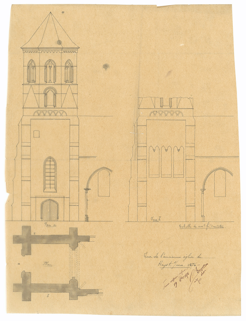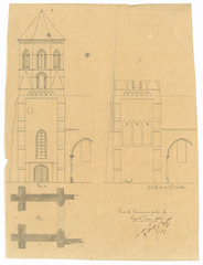 Opschrift: Tour de l'ancienne église de Heyst s/ mer. Omschrijving plan: diverse plannen toren Datum KCML: deze informatie wordt niet vermeld op het archiefstuk Archiefnummer: W0868