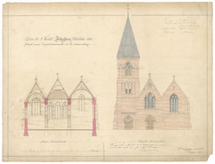 Opschrift: Eglise de S Vaast Zerkeghem Flandre Occ. Project pour l'agrandissement et la restauration Omschrijving plan: opstand voorgevel en dwarsdoorsnede Datum KCML: 07/11/1868 Archiefnummer: W0857
