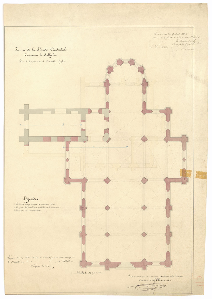 Opschrift: Province de la Flandre Occidentale. Commune de Snelleghem. Omschrijving plan: plattegrond niveau 0 Datum KCML: 09/05/1868 Archiefnummer: W0833
