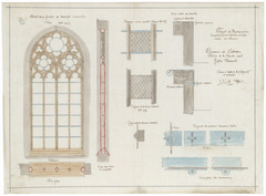 Opschrift: Projet de restauration. Renouvellement de 2 fenêtres et restauration des chenaux. Commune de Jabbeke. Province de la Flandre Occidentale. Eglise Paroissiale Omschrijving plan: detailtekeningen ramen en luiken Datum KCML: deze informatie wordt niet vermeld op het archiefstuk Archiefnummer: W0827
