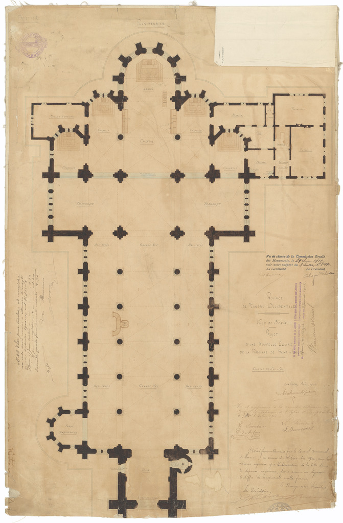 Opschrift: Province de Flandre Occidentale. Ville de Menin. Projet d'une nouvelle Eglise de la Paroisse de Saint-Joseph Omschrijving plan: plattegrond niveau 0 Datum KCML: 29/06/1901 Archiefnummer: W1161_02