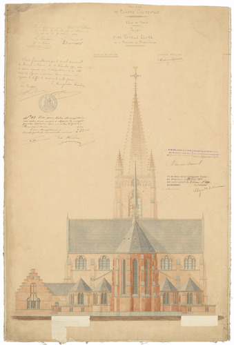 Opschrift: Province de Flandre Occidentale. Ville de Menin. Projet d'une nouvelle Eglise de la Paroisse de Saint-Joseph Omschrijving plan: opstand achtergevel Datum KCML: 29/06/1901 Archiefnummer: W1163_02