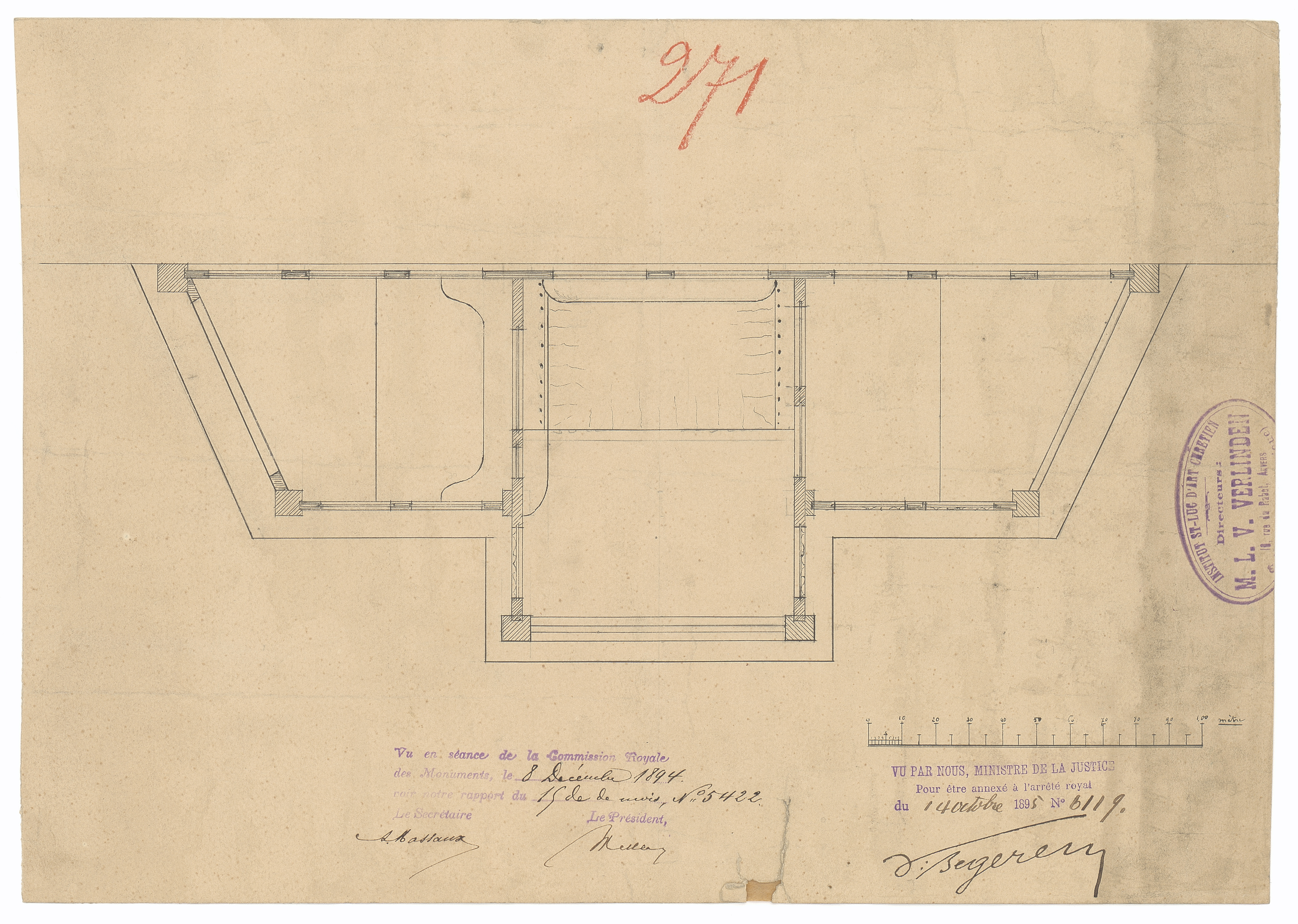 Opschrift: deze informatie wordt niet vermeld op het archiefstuk Omschrijving plan: grondplan biechtstoel Datum KCML: 08/12/1894 Archiefnummer: W1116