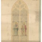 Opschrift: Ontwerp teekeing der geschilderde versters in het Sanctuarium der Parochiale kerk te Reninghe. Omschrijving plan: ontwerp glasraam (St. Antonius en St. Joris?) Datum KCML: deze informatie wordt niet vermeld op het archiefstuk Archiefnummer: W1151