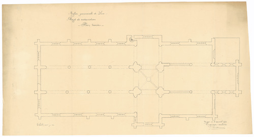 Opschrift: Eglise paroissiale de Loo. Projet de restauration Omschrijving plan: plattegrond niveau 0 Datum KCML: deze informatie wordt niet vermeld op het archiefstuk Archiefnummer: W1127