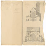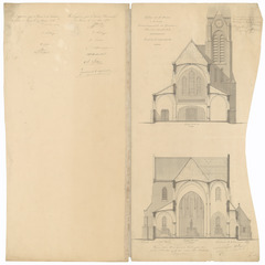 Opschrift: Eglise de St. Bavon à Lauwe. Arrondissement de Courtrai. Flandre Occidentale Omschrijving plan: plattegrond en dwarsdoorsneden (deel 1) Datum KCML: deze informatie wordt niet vermeld op het archiefstuk Archiefnummer: W1179_back