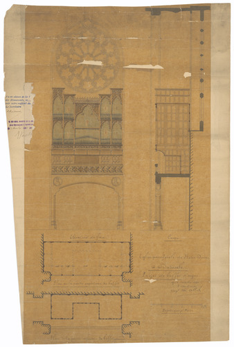 Opschrift: Eglise paroissiale de Notre Dame à Dadizeele. Projet de buffet d'orgue. Omschrijving plan: ontwerp orgelkast Datum KCML: deze informatie wordt niet vermeld op het archiefstuk Archiefnummer: W1252