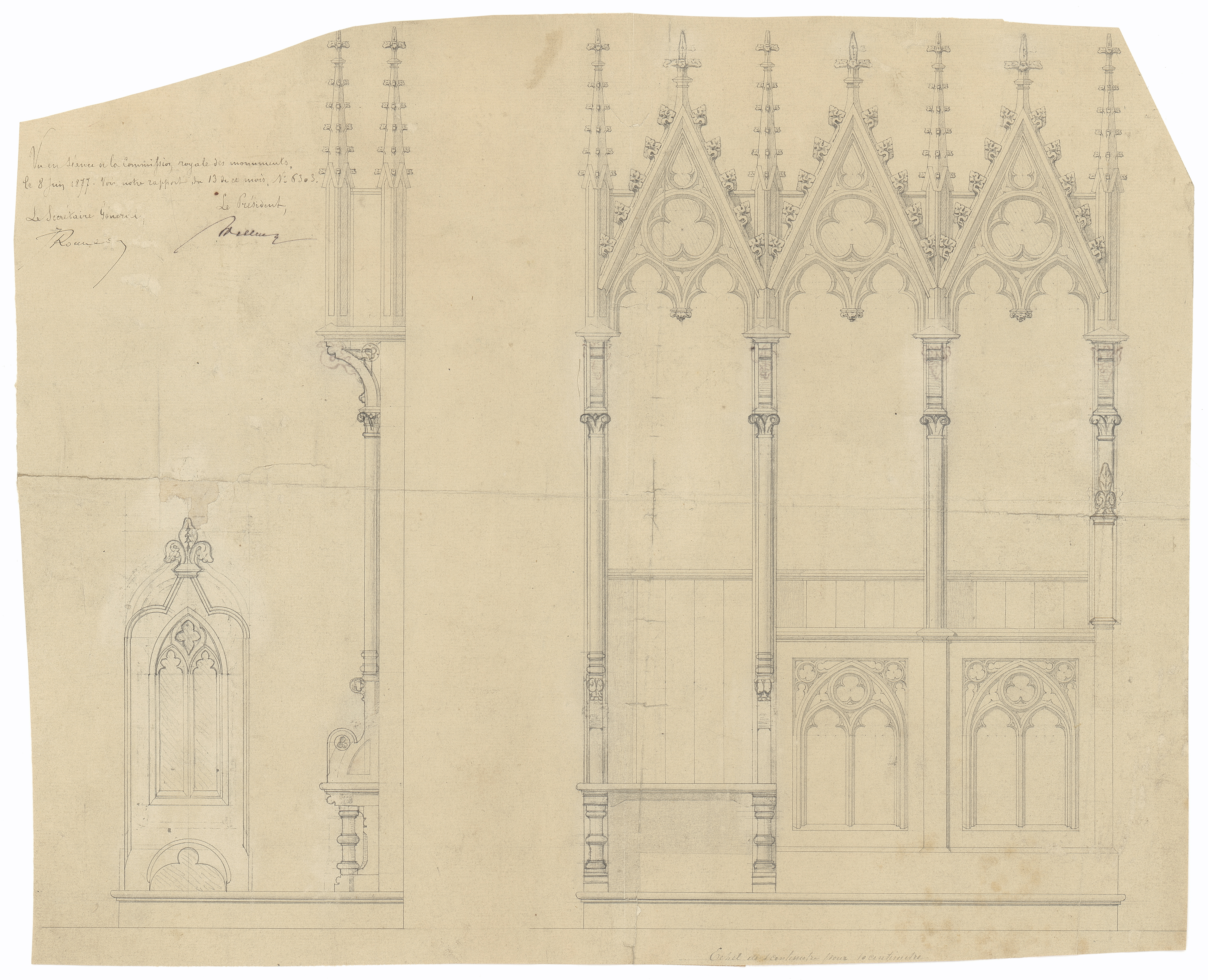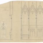 Opschrift: deze informatie wordt niet vermeld op het archiefstuk Omschrijving plan: ontwerp koorgestoelte Datum KCML: 08/06/1877 Archiefnummer: W1242