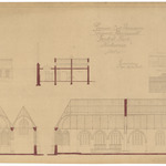 Opschrift: Provincie Oost-Vlaanderen. Gemeente Ramskcappelle. Parochiale Kerk. Herbouwing Omschrijving plan: langs- en dwarsdoorsnede Datum KCML: deze informatie wordt niet vermeld op het archiefstuk Archiefnummer: W1286