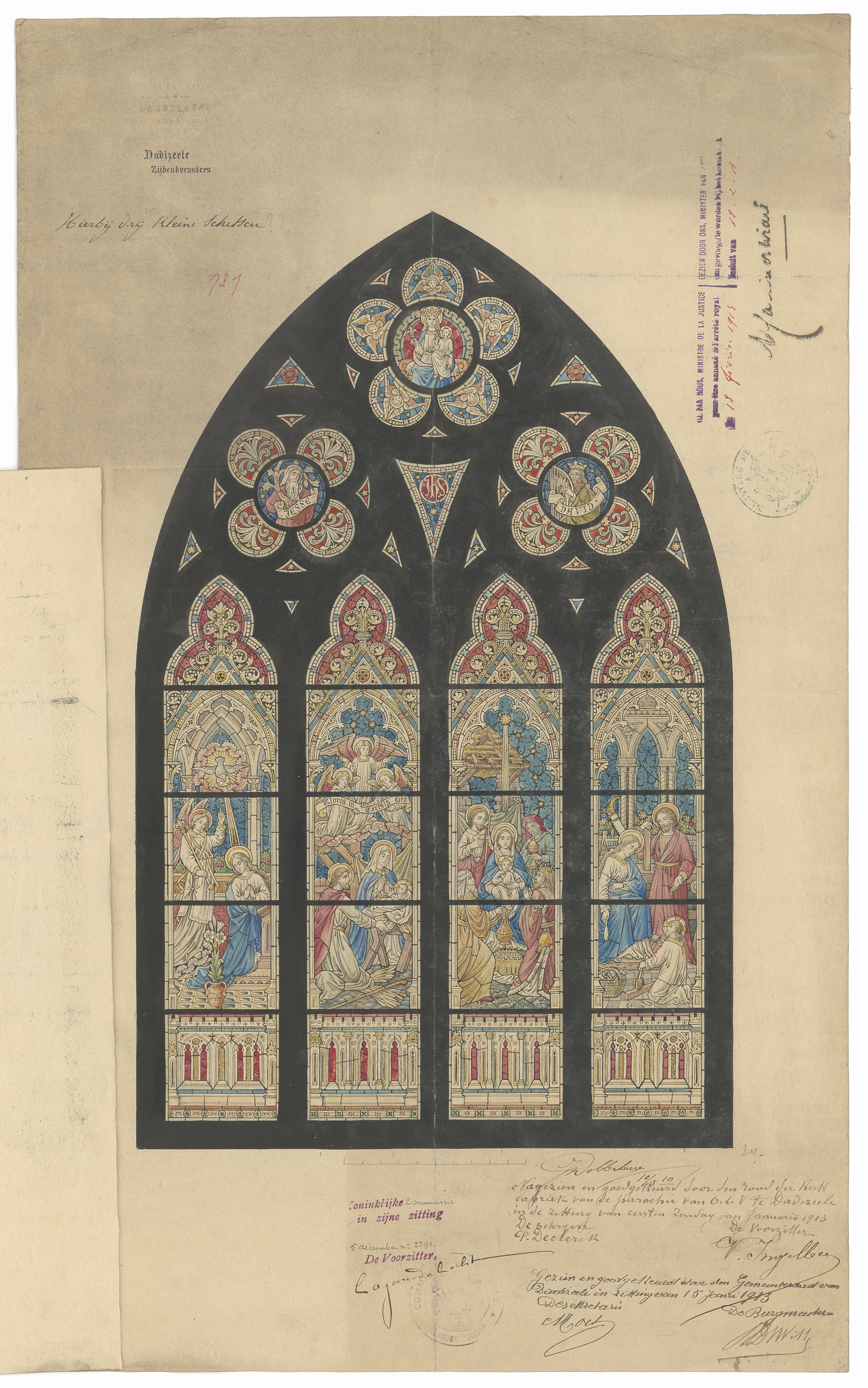 Drie Koningen of los Reyes Magos (de Oriente) In Spanje, mijn land van afkomst, zijn de Drie Koningen – of Wijzen - zeer belangrijke personages, zeker voor de kinderen. In Vlaanderen lijkt me dit vandaag de dag niet zo te zijn, maar misschien was het vroeger anders. Na de digitalisering van de plannen van de KCML vonden de archivarissen van het Agentschap Onroerend Erfgoed dit ontwerp voor de glasramen van de Bedevaartskerk Onze-Lieve-Vrouw Onbevlekt Ontvangen in Dadizele, met de afbeelding van de Drie Wijzen op het 3de glasraam (gelukkig kon het eigenlijke glasraam ontsnappen aan twee wereldoorlogen en zit het er nog). Ik ben nog nooit in Dadizele geweest, maar in de bibliotheek van het Agentschap Onroerend Erfgoed vond ik een boek over die glasramen. Ook ben ik geen expert op het vlak van de Drie Koningen, in tegenstelling tot professor Franco Cardini, auteur van het boek I Re Maggi: Storia e leggende. Ik kan enkel spreken over mijn ervaring met het Driekoningenfeest in mijn kindertijd in Spanje. De viering en de sfeer van dat feest daar hebben eigenlijk meer te maken met dat van Sinterklaas in België, een feest waarop kinderen op een mysterieuze wijze cadeaus krijgen. Maar de Sint is in Spanje volstrekt onbekend en niemand daar weet dat Belgen en Nederlanders denken dat hij van Spanje komt. Toen ik klein was, schreven de kinderen in Spanje een brief aan de Drie Koningen om hun gewenste cadeaus te vragen. Op 5 januari was er in vele dorpen en steden een grote stoet (‘La Cabalgata’) met kamelen, praalwagens en snoep. Thuis, waar een grote Kerststal met bijhorend landschap stond (el ‘belén’), verplaatste ik dag na dag de figuren van de Drie Koningen tot ze op 6 januari (een feestdag in Spanje) aankwamen aan de stal. In de nacht van 5 op 6 januari voelden we een zekere spanning en ook vrees voor de Drie Koningen…. Deze exotische en mysterieuze ‘magiërs’, ‘astrologen’, of ‘toekomstvoorspellers’ wisten aan elk kind hun gewenste cadeaus te brengen. Stoute kinderen kregen steenkool (althans in de tijd van mijn oma, in mijn tijd was dat al ‘suikersteenkool’). Er zijn nog andere gelijkenissen tussen Spaanse en Vlaamse tradities: op 6 januari aten we een soort Driekoningentaart (‘Roscón de Reyes’), waarin een figuurtje/beeldje verborgen zat. Wie dat kreeg, moest de volgende keer op de taart trakteren. En hoewel het volgende niet gelinkt is aan het Driekoningenfeest, gingen de kinderen in Spanje vroeger rond Kerst van deur tot deur kerstliedjes zingen en kregen daarvoor kleingeld of zoetigheden (‘el aguinaldo’). Later, toen de kinderen al wisten dat ‘de koningen de ouders waren’, was dat een grote ontgoocheling, een echte grens tussen het kind zijn en het volwassen zijn, het verlies van ‘de magie’, het wonderbaarlijke. We hebben toch dat geluk gehad, terwijl veel kinderen in de wereld (in oorlog, in armoede) nooit kunnen ontsnappen aan hun harde realiteit. Noemí Guijarro De Julián #BeeldindeKijker - februari 2024 --- Opschrift: Dadizeele. Zijbeukvensters Omschrijving plan: ontwerp glasraam zijbeuken Datum KCML: 30/11/1912 Archiefnummer: W1257_02