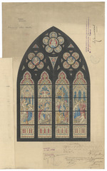 Drager: papier Techniek: pen, opgehoogd met aquarel, bijkomend ontwerp op papier opgekleefd Afmetingen (h x b in mm): 549 x 341 mm Schaal: deze informatie wordt niet vermeld op het archiefstuk