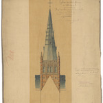 Opschrift: Eglise de N. Dame à Dadizeele. Projet d'Achèvement de la tour centrale. Omschrijving plan: opstand voorgevel Datum KCML: 13/12/1890 Archiefnummer: W1250