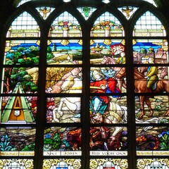 De afbeelding 'Boezinge Sint-Michielskerk glasraam Sint-Joris, kapelletje en ruiterij Boerenjeugdbond' gemaakt door Vanneste, Pol wordt ter beschikking gesteld door Agentschap Onroerend Erfgoed (AOE) onder de volgende voorwaarden: Modellicentie voor gratis hergebruik, Naamsvermelding-GelijkDelen 4.0 Internationaal.