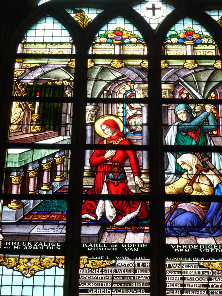 De afbeelding 'Boezinge Sint-Michielskerk glasraam moord op Karel De Goede' gemaakt door Vanneste, Pol wordt ter beschikking gesteld door Agentschap Onroerend Erfgoed (AOE) onder de volgende voorwaarden: Modellicentie voor gratis hergebruik, Naamsvermelding-GelijkDelen 4.0 Internationaal.