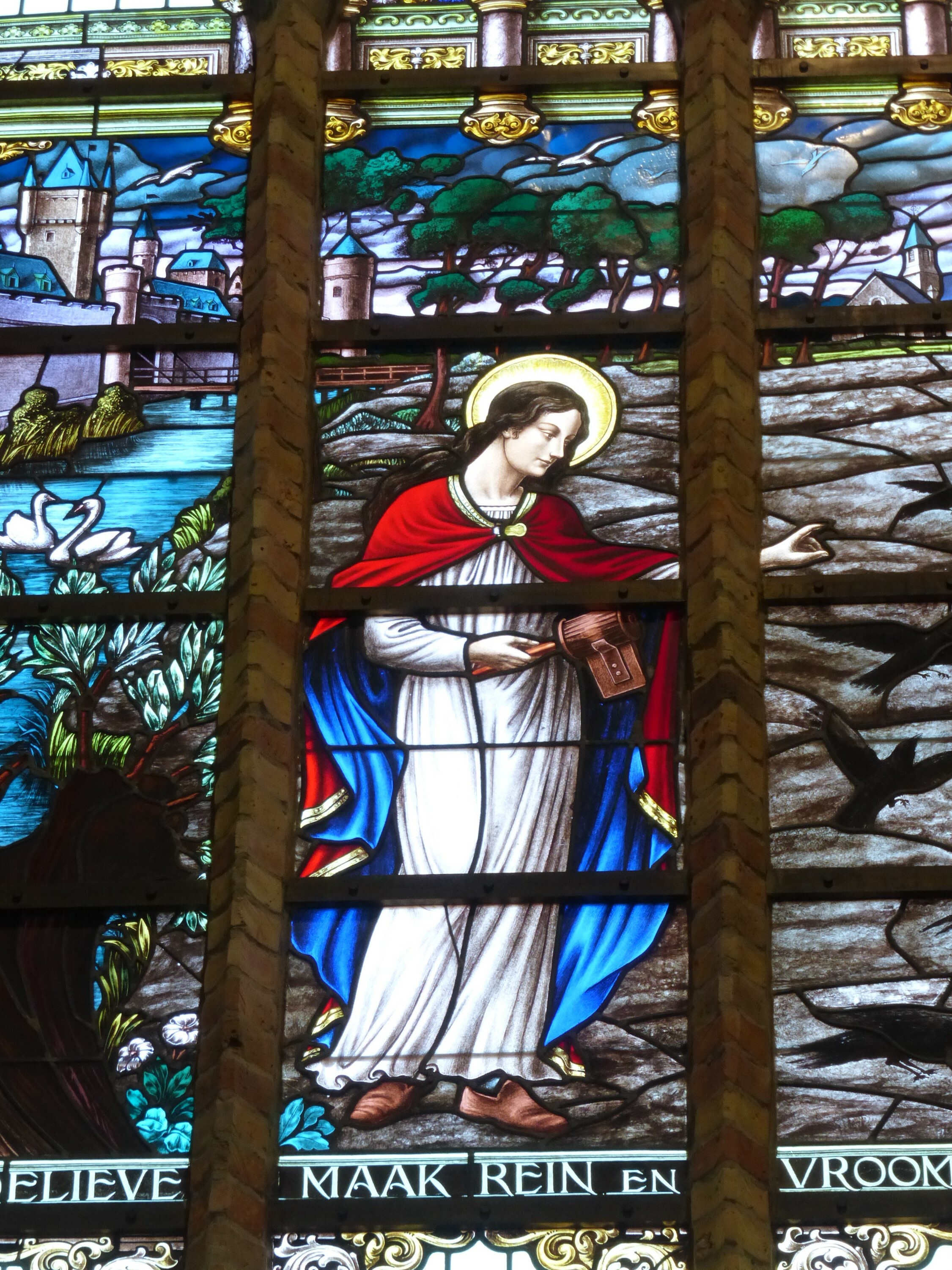 De afbeelding 'Boezinge Sint-Michielskerk glasraam Heilige Godelieve' gemaakt door Vanneste, Pol wordt ter beschikking gesteld door Agentschap Onroerend Erfgoed (AOE) onder de volgende voorwaarden: Modellicentie voor gratis hergebruik, Naamsvermelding-GelijkDelen 4.0 Internationaal.