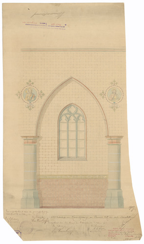 Opschrift: Ontwerp van Muurschildering der Parochiale Kerk van Oost-Roosebeke. Omschrijving plan: ontwerp muurschildering Datum KCML: 17/02/1906 Archiefnummer: W1384