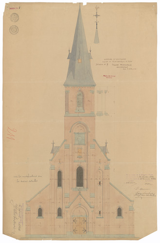 Opschrift: Commune d'Oostcamp. Eglise d'Hertsberghe St. Jean. Omschrijving plan: opstand voorgevel Datum KCML: 16/07/1892 Archiefnummer: W1347