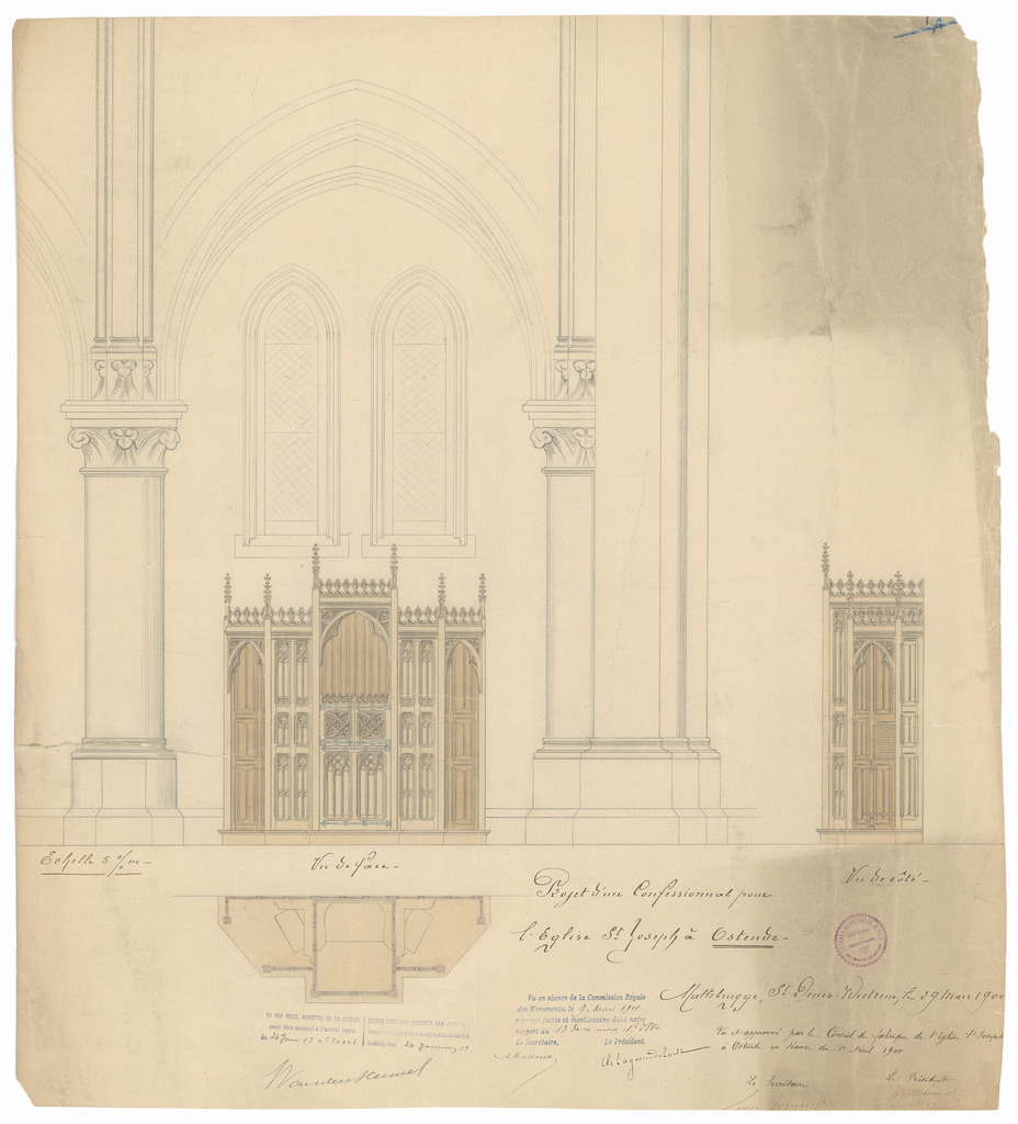 Opschrift: Projet d'un Confesstionnal pour l'Eglise St. Joseph à Ostende Omschrijving plan: ontwerp biechtstoel Datum KCML: 9-3-1901 Archiefnummer: W1314