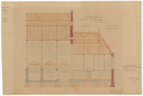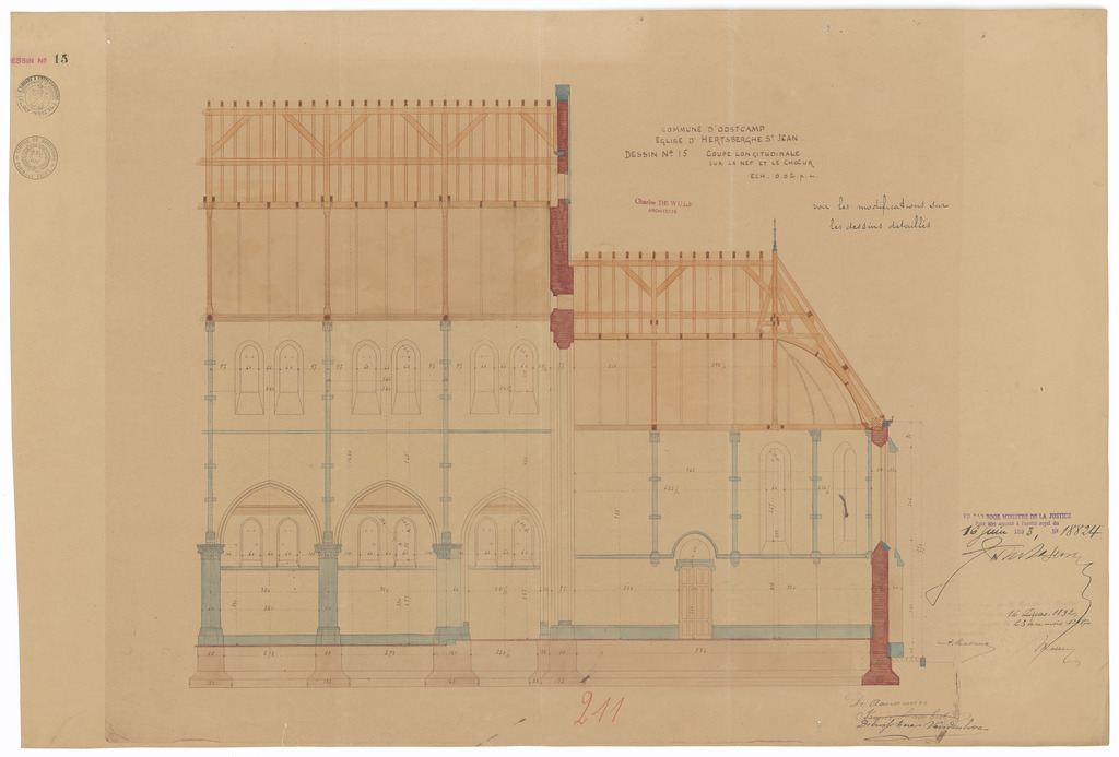 Opschrift: Commune d'Oostcamp. Eglise d'Hertsberghe St. Jean. Omschrijving plan: langsdoorsnede Datum KCML: 16/07/1892 Archiefnummer: W1355