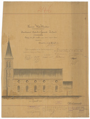 Opschrift: Provincie West-Vlaanderen. Arrondissement Oostende - Gemeente Zandvoorde. Ontwerp tot het maken van eenen nieuwen toren. Omschrijving plan: opstand zijgevel 1 Datum KCML: 23/06/1894 Archiefnummer: W1341_a