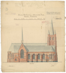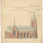 Opschrift: Provincie West Vlaanderen. Arrondissement Brugge. Gemeente Ruddervoorde. Ontwerp tot voltrekken en vergrooten der Parochiale Kerk Omschrijving plan: opstand zijgevel 1 Datum KCML: 8-1-1910 Archiefnummer: W1376