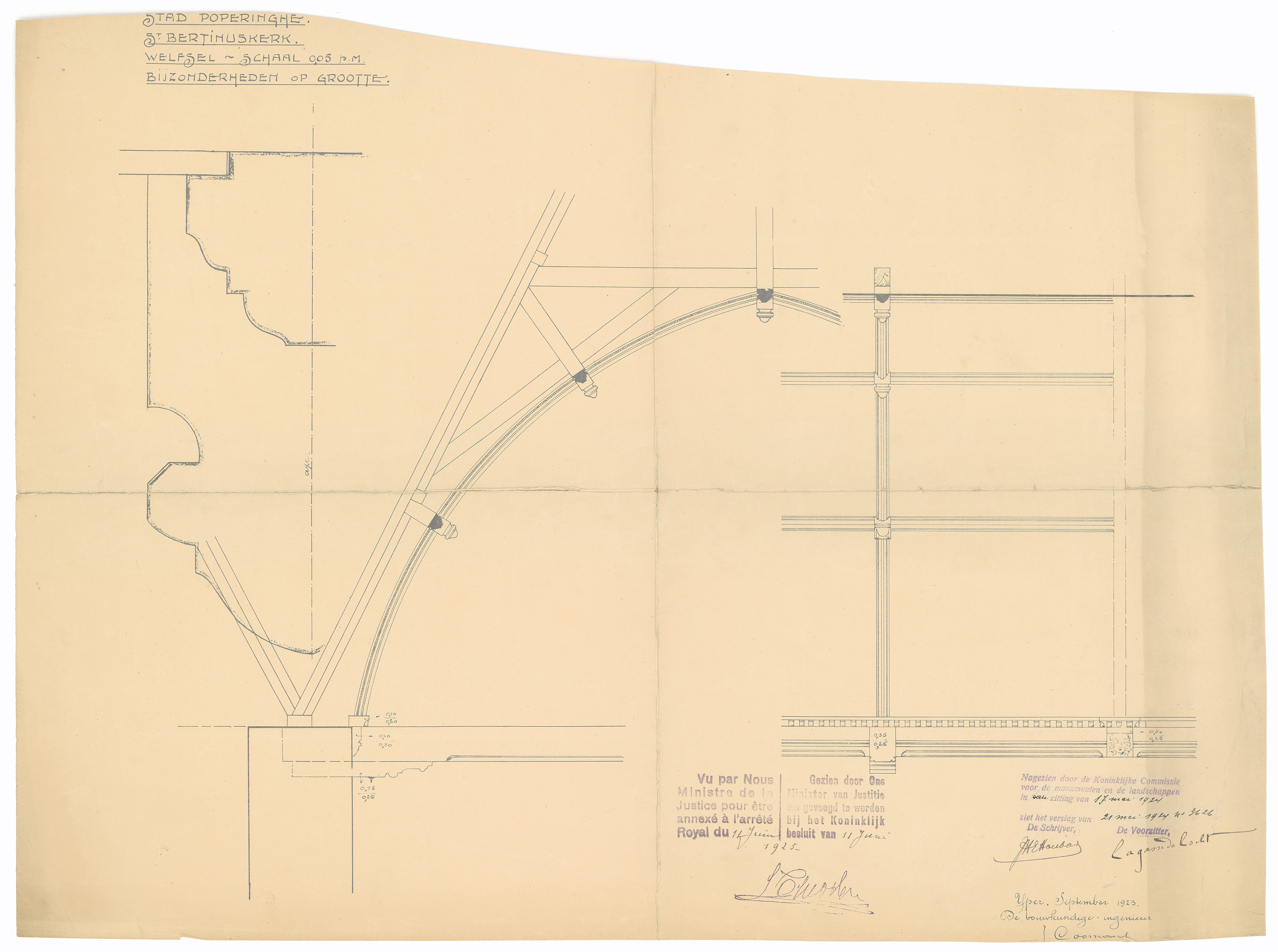 Opschrift: Stad Poperinghe. St. Bertinuskerk. Omschrijving plan: detailtekeningen welfsels Datum KCML: 17/05/1924 Archiefnummer: W1416