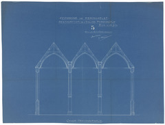 Opschrift: Commune de Reninghelst. Restauration de l'eglise paroissiale Omschrijving plan: dwarsdoorsnede Datum KCML: deze informatie wordt niet vermeld op het archiefstuk Archiefnummer: W1444