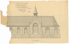 Opschrift: Commune de Reninghelst. Hameau de la Clytte. L'Eglise. Omschrijving plan: opstand Z-gevel Datum KCML: deze informatie wordt niet vermeld op het archiefstuk Archiefnummer: W1469