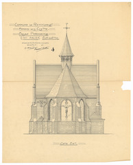 Opschrift: Commune de Reninghelst. Hameau de la Clytte. L'Eglise. Omschrijving plan: opstand achtergevel Datum KCML: deze informatie wordt niet vermeld op het archiefstuk Archiefnummer: W1465
