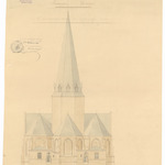 Opschrift: Provintie West-Vlaanderen. Arrondissement Ieperen. Gemeente Watou. Tegenwoordigen staat der parochiale kerk Omschrijving plan: opstand achtergevel Datum KCML: deze informatie wordt niet vermeld op het archiefstuk Archiefnummer: W1494