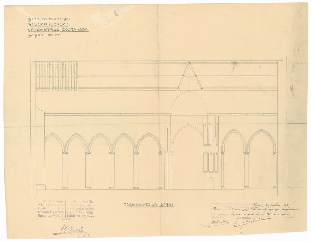 Opschrift: Stad Poperinghe. St. Bertinuskerk. Omschrijving plan: langsdoorsnede Datum KCML: 17/05/1924 Archiefnummer: W1412