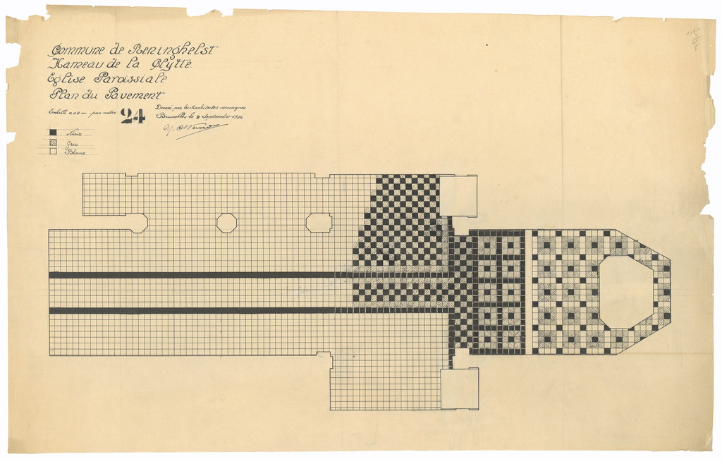 Opschrift: Commune de Reninghelst. Hameau de la Clytte. L'Eglise. Omschrijving plan: ontwerp bevloering Datum KCML: deze informatie wordt niet vermeld op het archiefstuk Archiefnummer: W1483