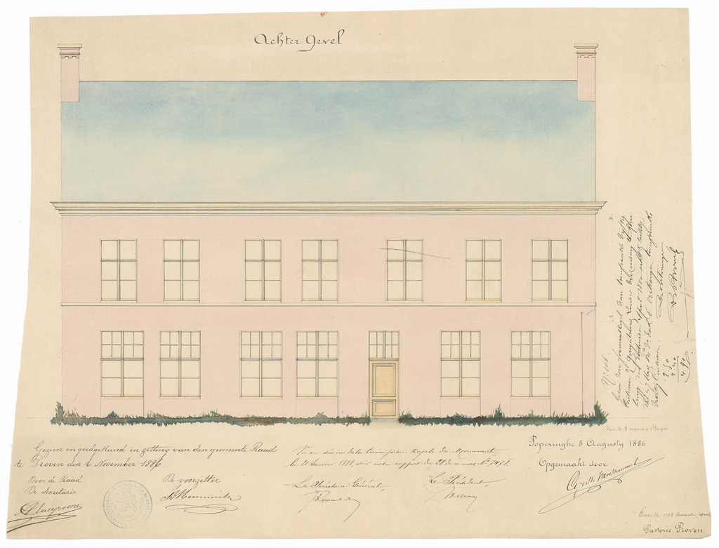 Opschrift: Pastorie Proven Omschrijving plan: opstand achtergevel Datum KCML: 21/01/1888 Archiefnummer: W1436