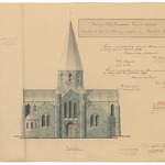 Opschrift: Provincie West-Vlaanderen. Gemeente Aerseele. Ontwerp tot het herstellen en vergrooten der Parochiale Kerk. Omschrijving plan: opstand voorgevel Datum KCML: 5-3-1910 Archiefnummer: W1580