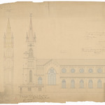 Opschrift: Ontwerp, voor het opbouwen van O.L.Vrouwekerk te Rousselaere Omschrijving plan: opstand zijgevel 1 Datum KCML: 30/05/1874 Archiefnummer: W1512