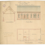 Opschrift: Commune de Watou St. Jean. Agrandissement du Presbytere. Construction de nouvelles dependançes et cuisine Omschrijving plan: plattegrond, opstand zijgevel en doorsnede Datum KCML: deze informatie wordt niet vermeld op het archiefstuk Archiefnummer: W1506