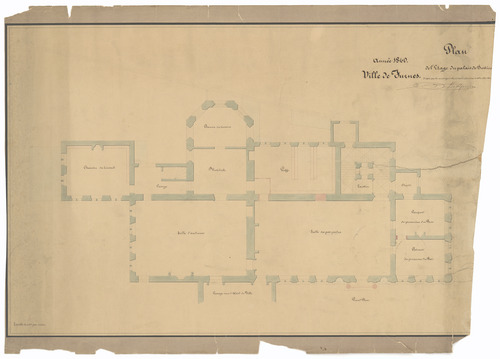 Opschrift: Ville de Furnes. Plan de l'Etage du palais de justice. Omschrijving plan: plattegrond niveau 1 Datum KCML: deze informatie wordt niet vermeld op het archiefstuk Archiefnummer: W1638