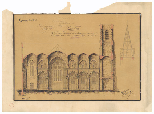 Opschrift: Eggewaerts capelle Omschrijving plan: langsdoorsnede Datum KCML: 17/08/1872 Archiefnummer: W1690