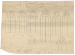Opschrift: Ontwerp tot het herstellen der vensters van de kerk St. Nicolas te Veurne. Omschrijving plan: detailtekeningen ramen Datum KCML: 17/07/1880 Archiefnummer: W1643