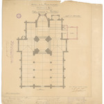 Opschrift: Province de la Flandre Occidentale. Arrondissement Ypres. Eglise paroissiale de Westvleteren. Projet de restauration Omschrijving plan: plattegrond niveau 0 Datum KCML: deze informatie wordt niet vermeld op het archiefstuk Archiefnummer: W1701