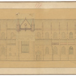 Drager: kalk op papier op doek Techniek: pen, opgehoogd met aquarel, aangepast ontwerp opgekleefd Afmetingen (h x b in mm): 495 x 945 mm Schaal: 1/100