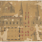Opschrift: Kerk van Sint Laurentius te Wielsbeke. Ontwerp van herstelling. Aanduiding der tweede reeks werken. Omschrijving plan: plattegrond, gevelopstanden en doorsneden Datum KCML: deze informatie wordt niet vermeld op het archiefstuk Archiefnummer: W1770